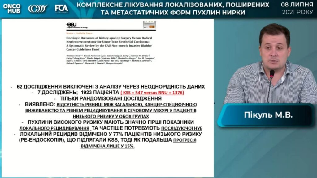 8 липня 2021 вебінар «Комплексне лікування локалізованих, поширених та метастатичних форм пухлин нирки» від проекту OncoHub by USCO, Fight Cancer Academy та Спілки онкоурологів України.