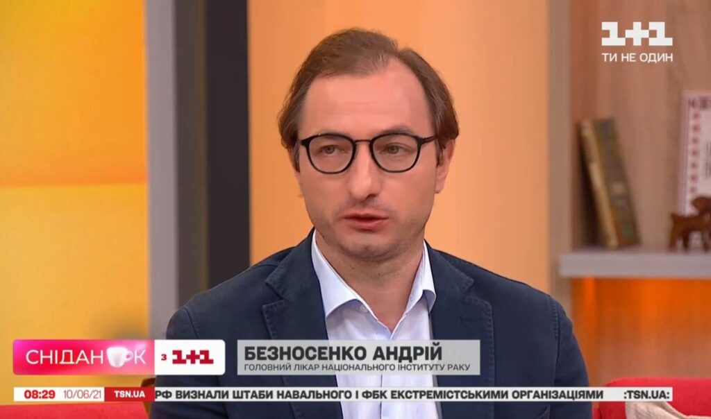 10.06.2021 в ефірі програми «Сніданок з 1+1» головний лікар Національного інституту раку Андрій Безносенко та лікар-онкоуролог Олександр Стаховський.